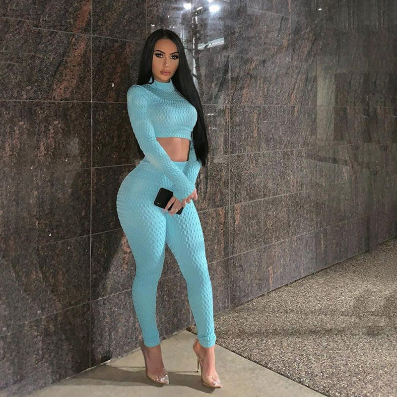 Skinny Sport-Set mit langen Ärmeln, Damen Push-Up Sporthose, Fitnesshose, Leggings, Sportleggings, Fitness, Gym, Laufleggings, Yoga, Figurformende, Nahtlose, Kompressionsleggings, Stretch, Atmungsaktive